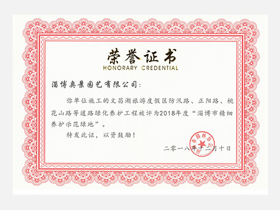 2018年淄博市精細(xì)養(yǎng)護(hù)示范綠地