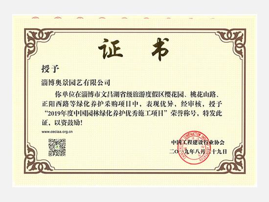 2019年度中國(guó)園林綠化養(yǎng)護(hù)優(yōu)秀施工項(xiàng)目