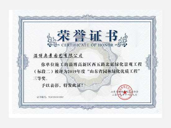 2019年山東省園林綠化優(yōu)質(zhì)工程三等獎(jiǎng)